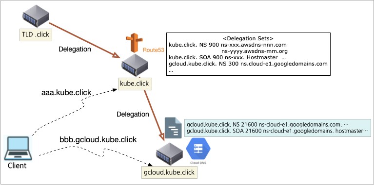 물론 Public cloud로는 제목에 언급된 Route53과 Google cloud DNS 각각에 대해 모두 다루어 볼 것이며, 이번 글은 다음의 2개의 글에 대한 준비 과정으로 보면 될 듯하다. 보너스로, Route53 에서 관리되는 하나의 도메인을 parent 로 해서, Google cloud DNS에 그 subdomain 을 hosted zone으로 등록하고 사용하는 과정과 방법을 같이 기록 정리해 두고자 한다.