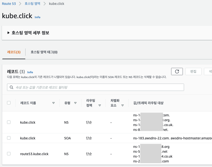 Route53 > 호스팅 영역 > kube.click > 레코드 생성